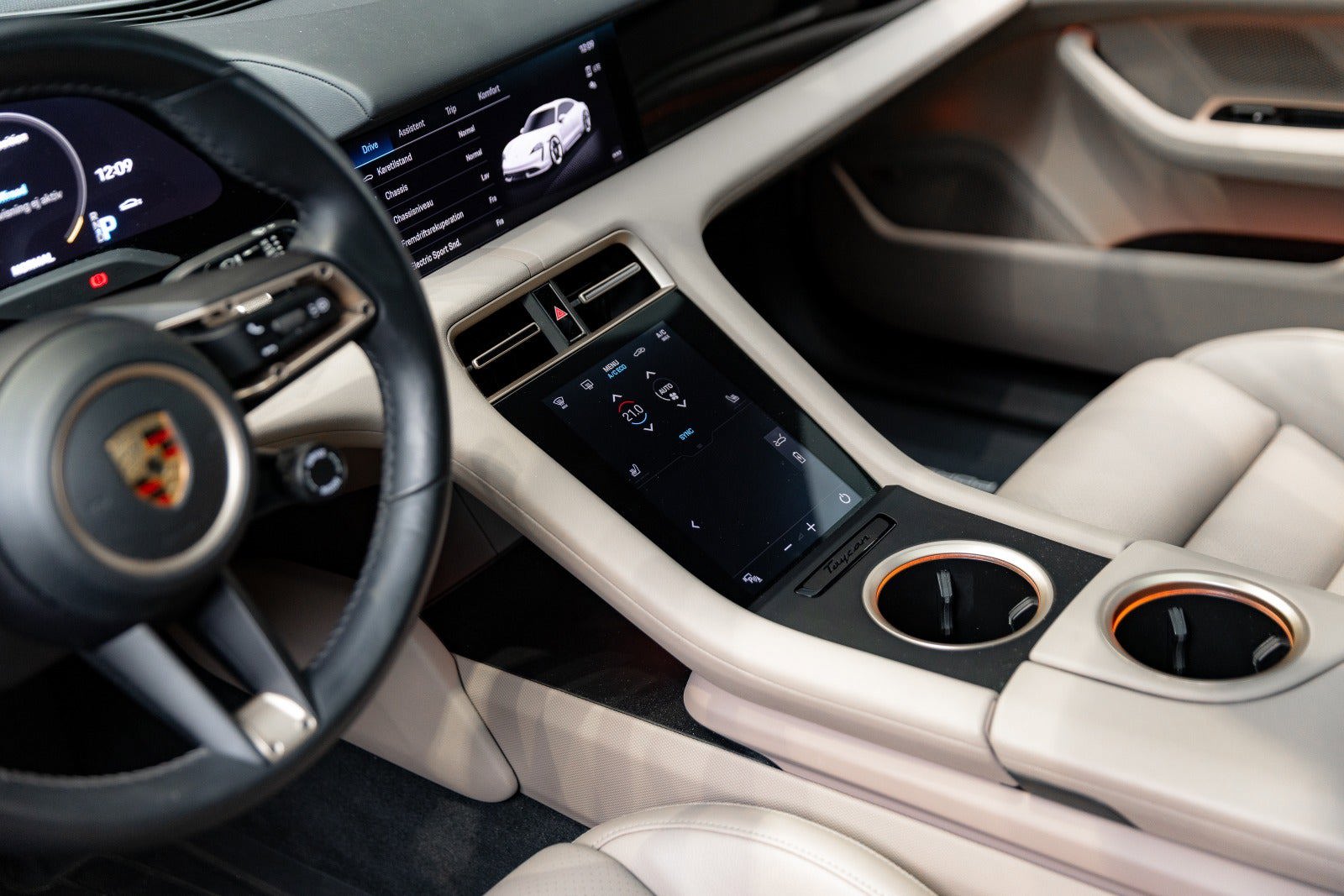 • Vulcano Grey Metallic • Tofarvet delvist læderinteriør, sort/beige • 20" Taycan Turbo Aero hjul • Modelbetegnelse fravalgt • Servostyring Plus • Ratvarme • Fast panoramaglastag • Porsche-emblem på nakkestøtter (forsæder) • Sædevarme (for) • Komfortadgang • Automatisk nedblændelige udvendige og indvendige spejle • 4+1 sæder • Elektrisk indklappelige sidespejle • Sport Chrono-pakke • Varmepumpe • BOSE® Surround Sound System • Porsche Electric Sport Sound • Accentpakke i Neodyme • Performance Battery Plus • ParkAssist inkl. bakkamera • Porsche InnoDrive med aktiv vognbaneassistent og adaptiv fartpilot • Adaptive sportssæder foran (18-vejs elektriske) med memorypakke • Sidelister ved ruder i sort (højglans) • Ambientebelysning • Dørtrin i børstet aluminium i sort • Mørktonede ruder (Privacy Glass) |