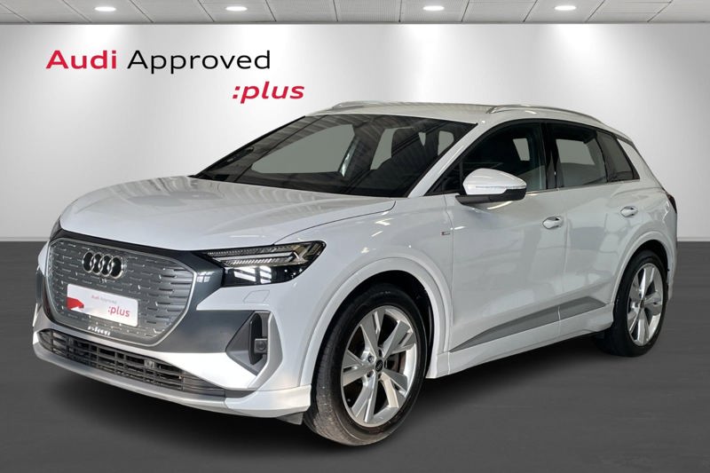 Udvalgt standardudstyr i Q4 e-tron: * Dansk bil med Varmepumpe * LED forlygter og baglygter * Undvigeassistent og drejeassistent * Komfortparkeringsklimafunktion * Klimaanlæg automatisk * Vognbaneafvigelsesadvarsel * Sædevarme foran * 19" alufælge 5-eget design * Audi pre sense front * Audi sound system * Børnesikring, elektrisk betjent * Børnesædefastgørelse i-Size i passagersiden og i-Size og * Top Tether på de yderste bagsædepladser * Dekorindlæg i sort eksklusiv lak * Digital radiomodtagelse * Digitalt cockpit 10,25” * Multifunktionssportslæderrat flad top og bund og skiftekontakter * Forsæder med højdeindstilling * Højglanspakke blanke rudelister * Komfortmidterarmlæn foran * Mode-3-ladekabel * Sidespejle med elektrisk indstilling og elopvarmning * Sidespejlhuse i bilens farve * Splitbagsæde 40:60 * Tagræling blank